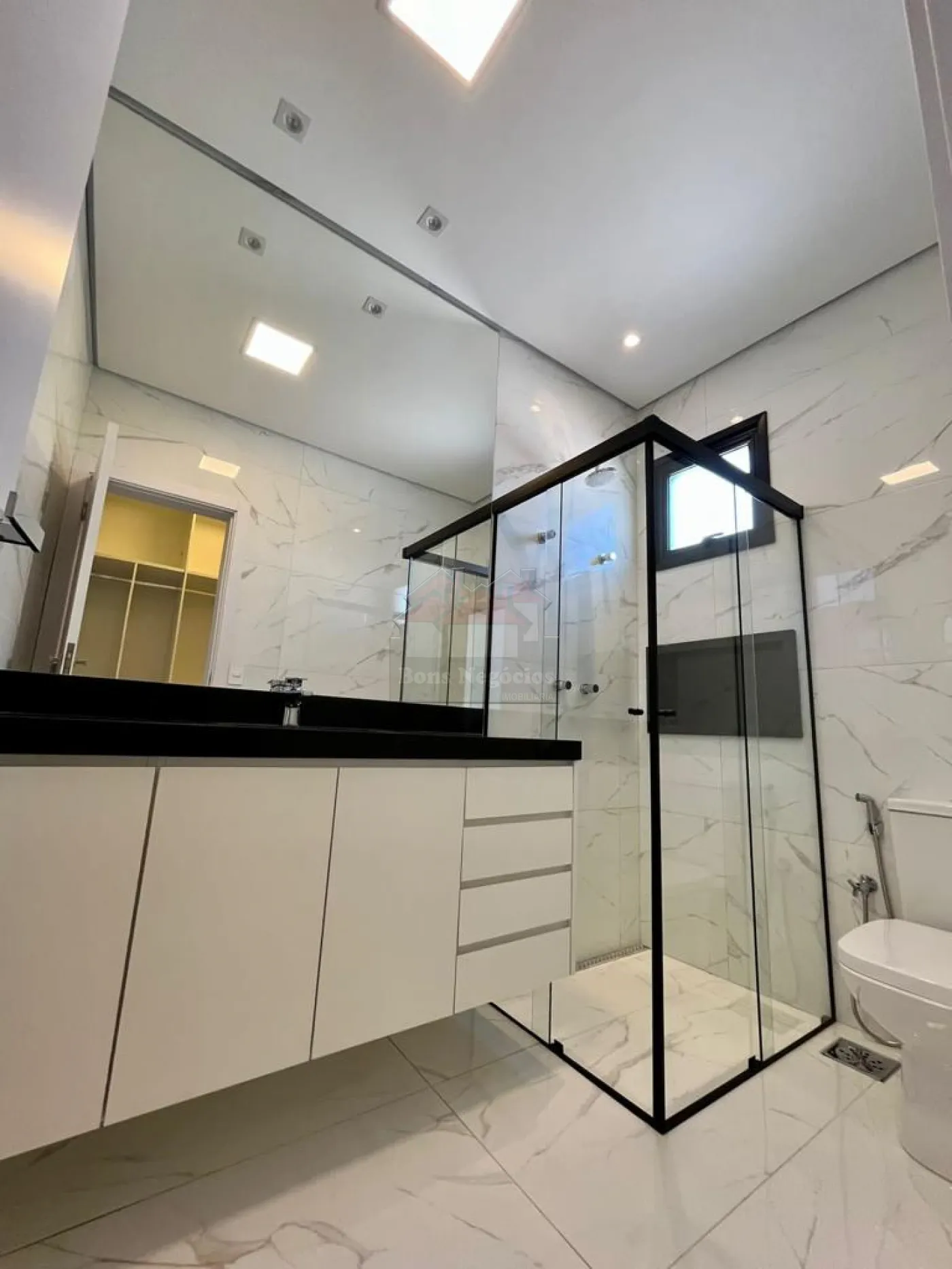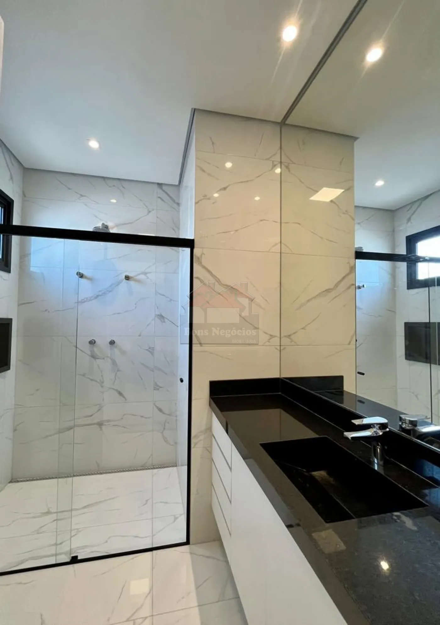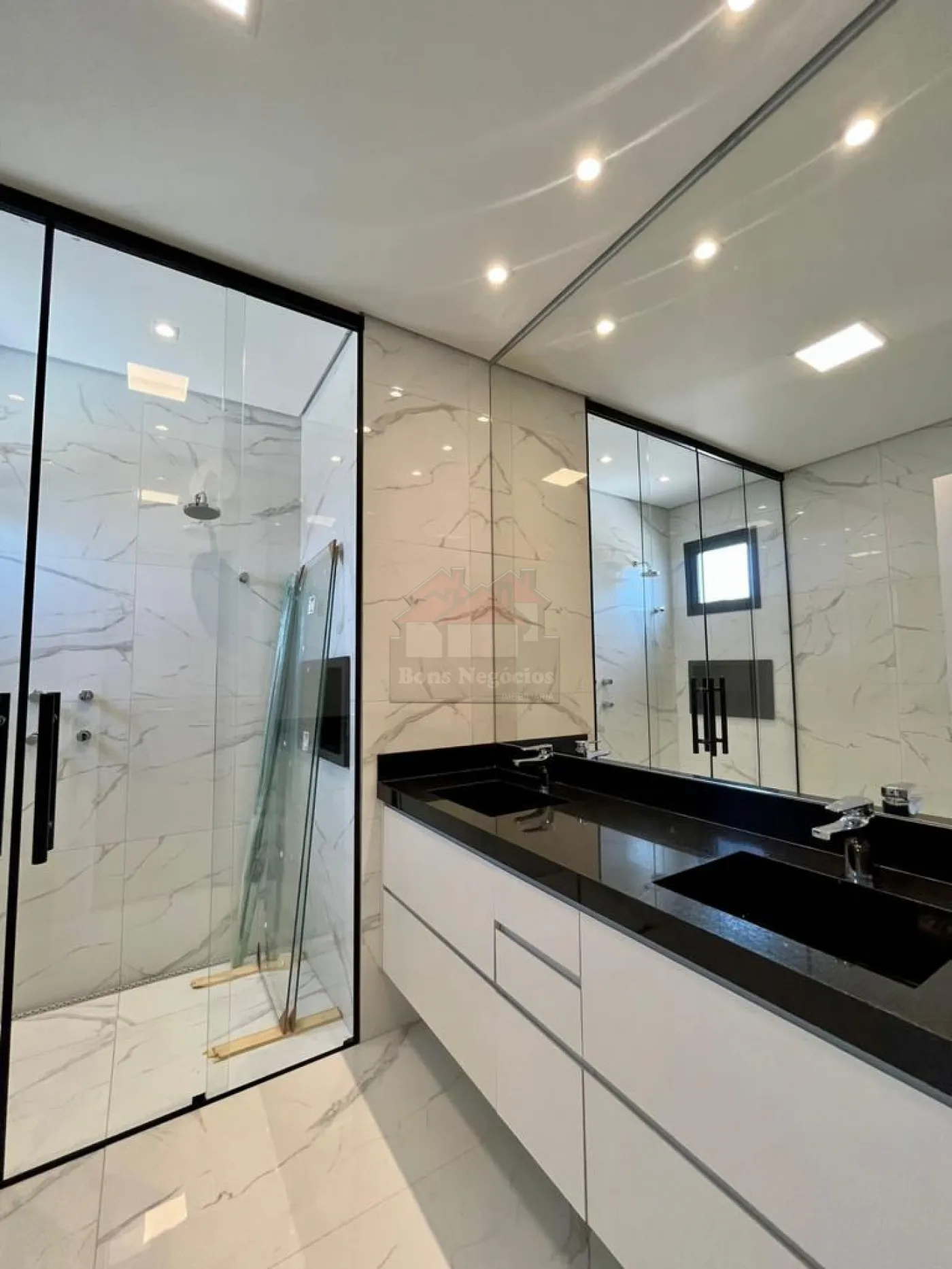 3 suítes superiores com closet, sacada, ampla sala para 2 ambientes, lavabo, escritório na parte inferior (podendo ser revertido a uma suíte), cozinha conjugada com área gourmet, piscina com hidromassagem, sauna, vestiário, lavanderia, garagem para 6 autos sendo 3 cobertos, casa toda em porcelanato, aquecimento de água solar, completa em armários, box, espelhos, iluminação.