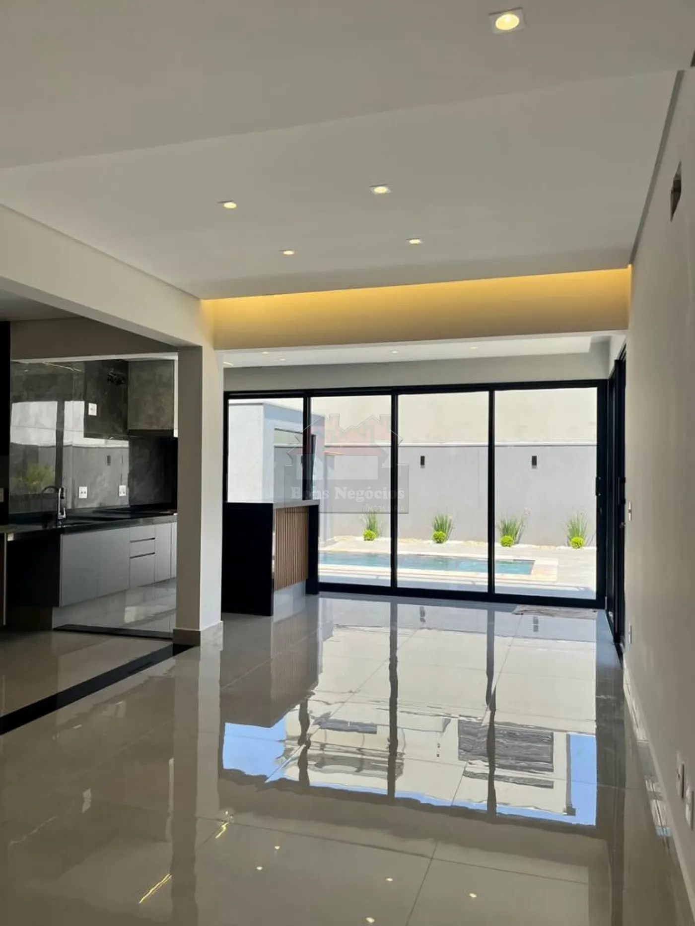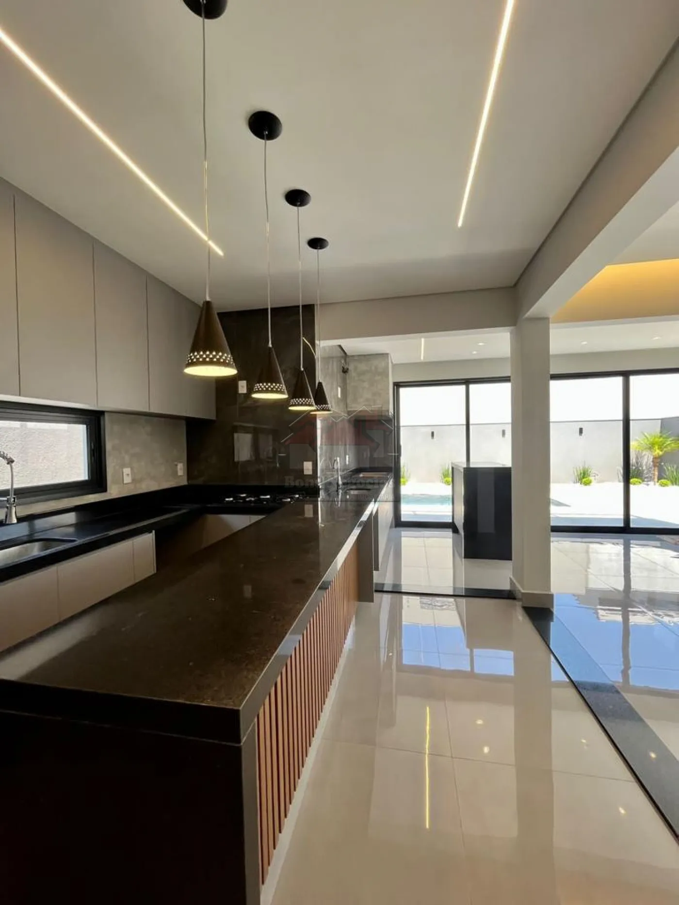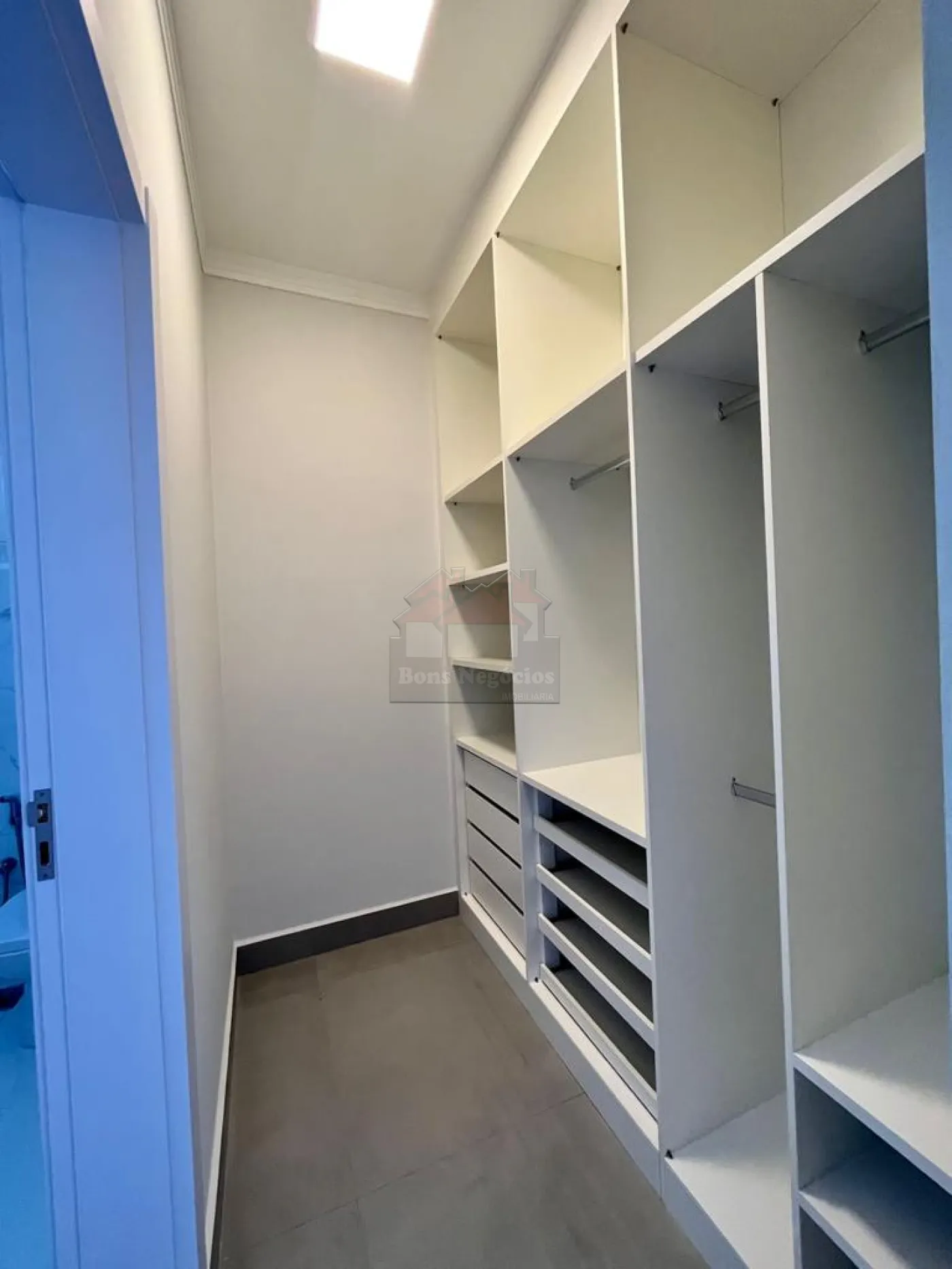 3 suítes superiores com closet, sacada, ampla sala para 2 ambientes, lavabo, escritório na parte inferior (podendo ser revertido a uma suíte), cozinha conjugada com área gourmet, piscina com hidromassagem, sauna, vestiário, lavanderia, garagem para 6 autos sendo 3 cobertos, casa toda em porcelanato, aquecimento de água solar, completa em armários, box, espelhos, iluminação.